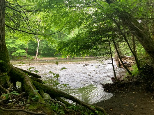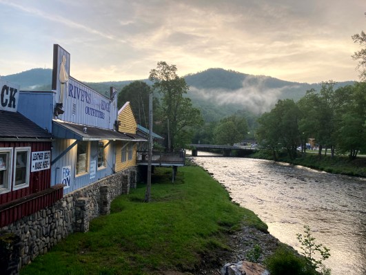 Die heutige Bewegungsrunde am Start des Tages führt uns entlang des Oconaluftee Rivers, traumhaft schön.