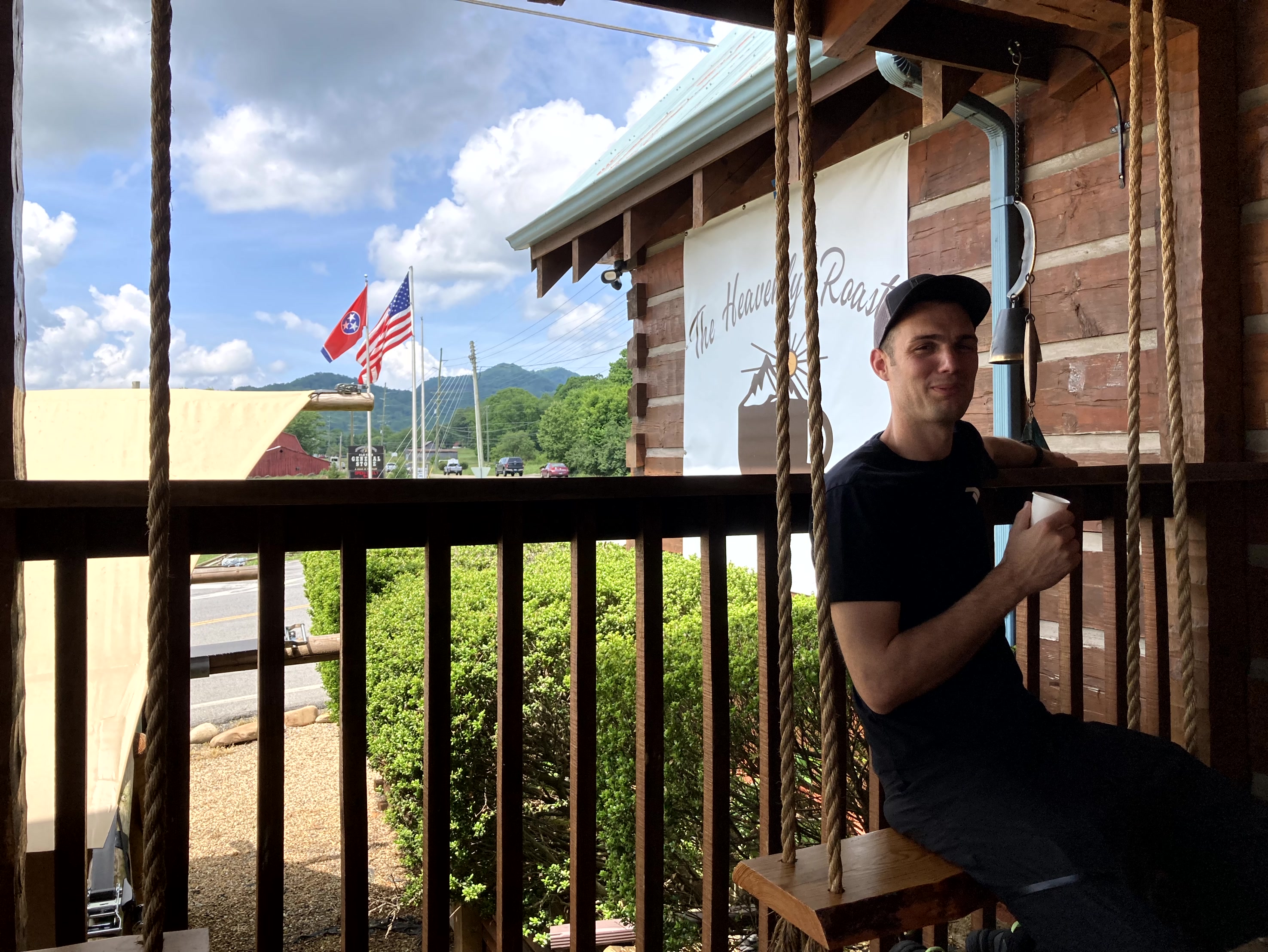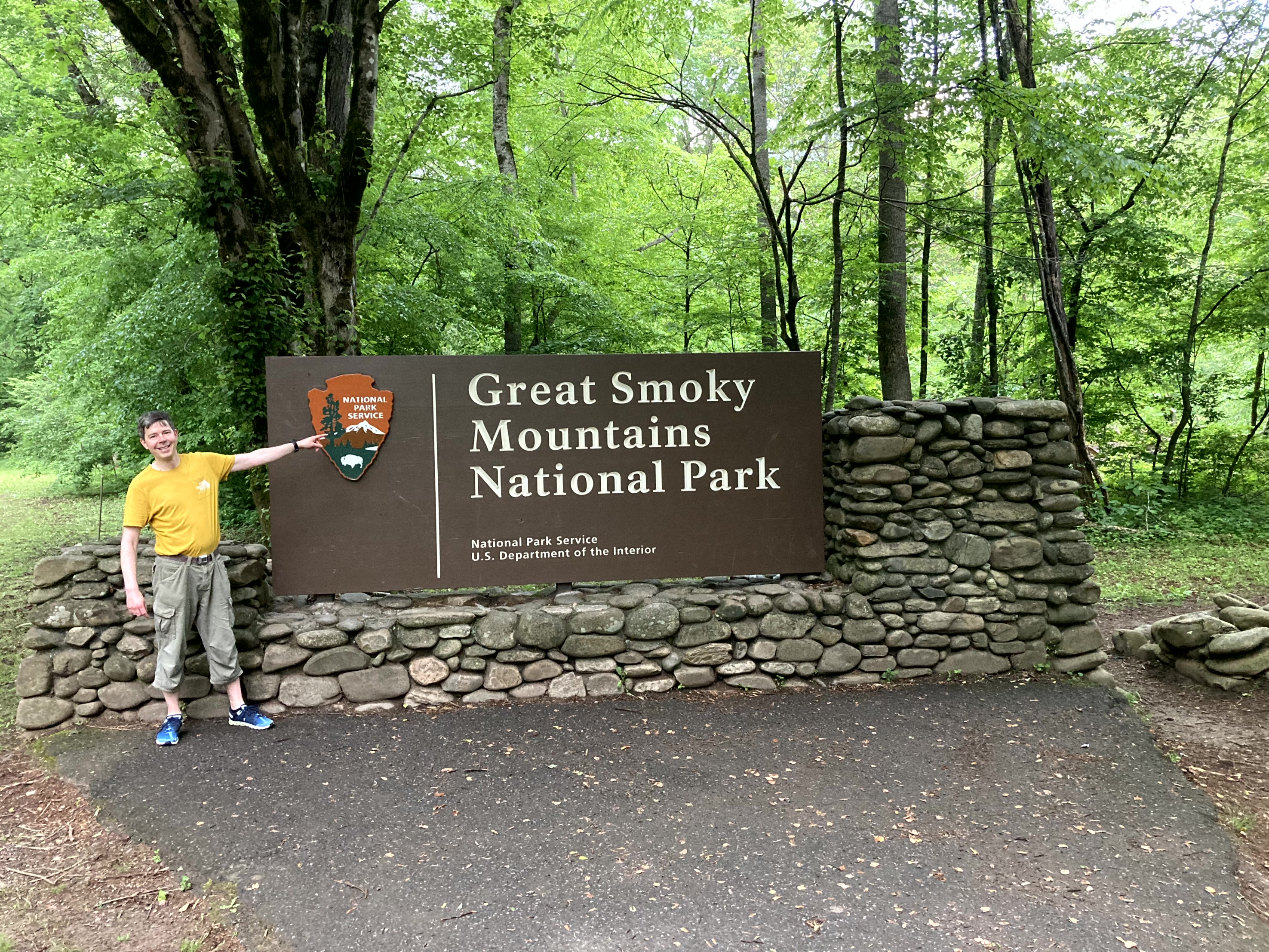 Hier ist der Schreiberling als geniessender Beifahrer abgebildet auf dem letzten Teilstück des Blue Ridge Parkways.
