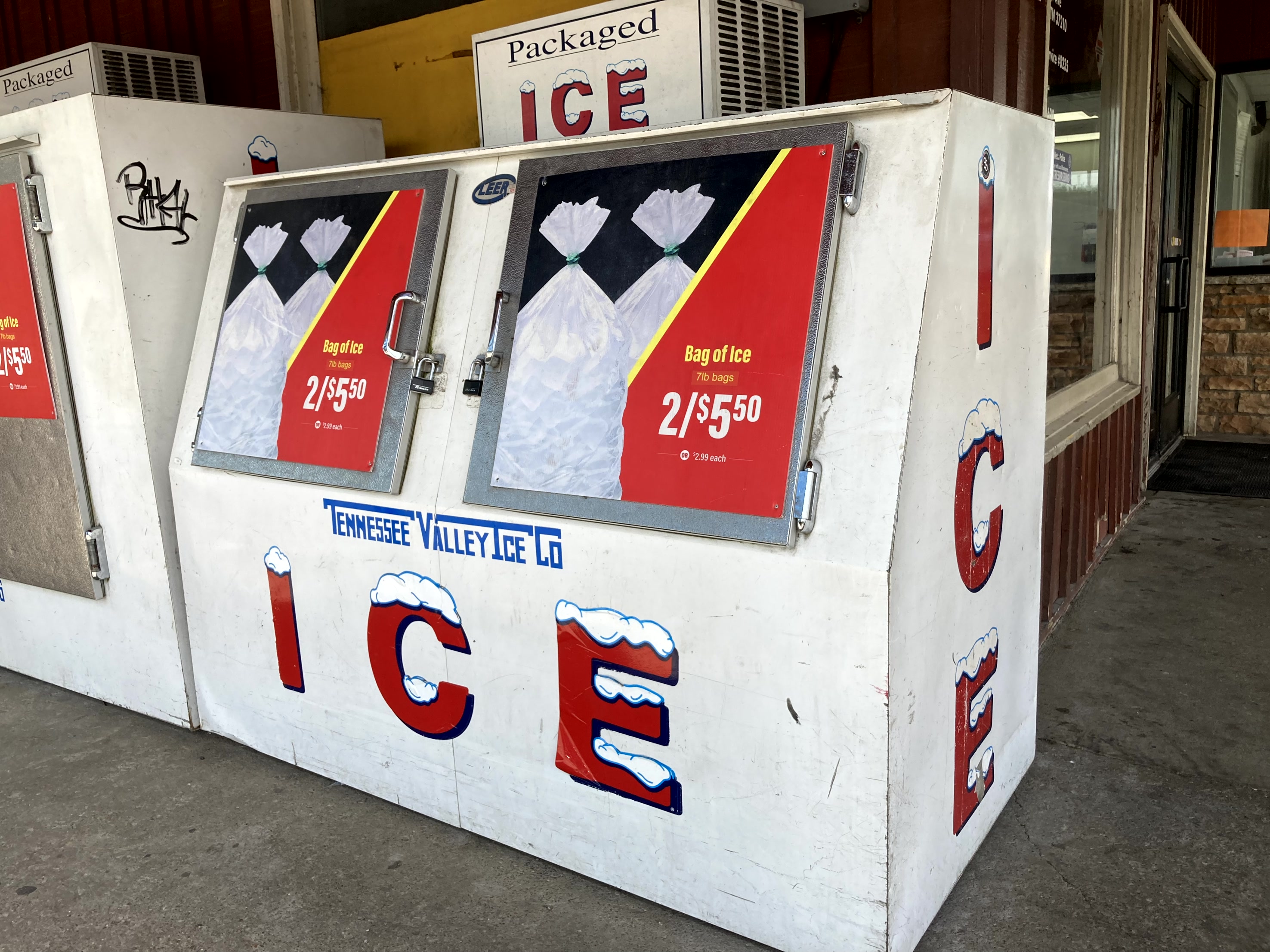 Ebenfalls typisch Amerika: Eiskühler an der Tankstelle und die Schulbusse