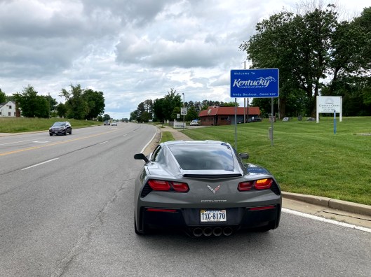 Eine halbe Stunde nördlich sind wir schon in Kentucky auf dem Weg nach Bowling Green ins Corvette Museum.
