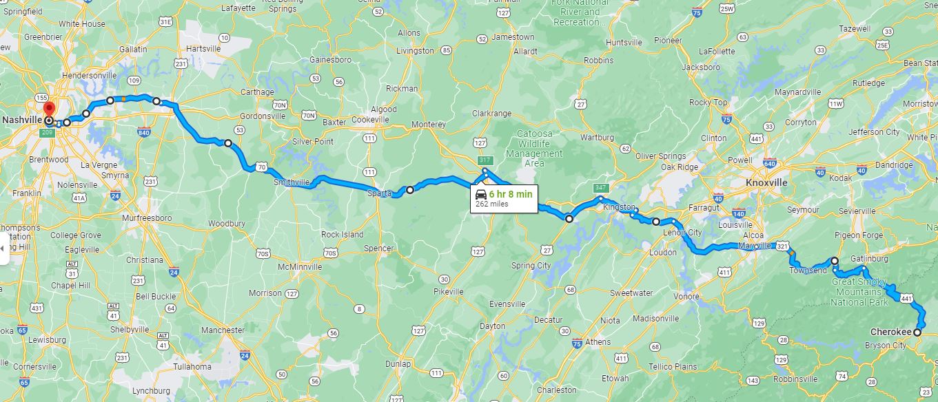 Zeit vor der Abfahrt für die Routenplanung bis Nashville: