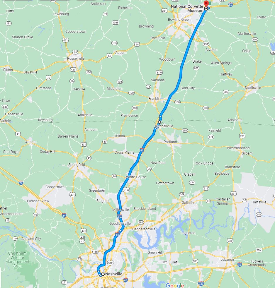 Die heutige Route ist recht kurz und führt uns nach Bowling Green, `Vette City