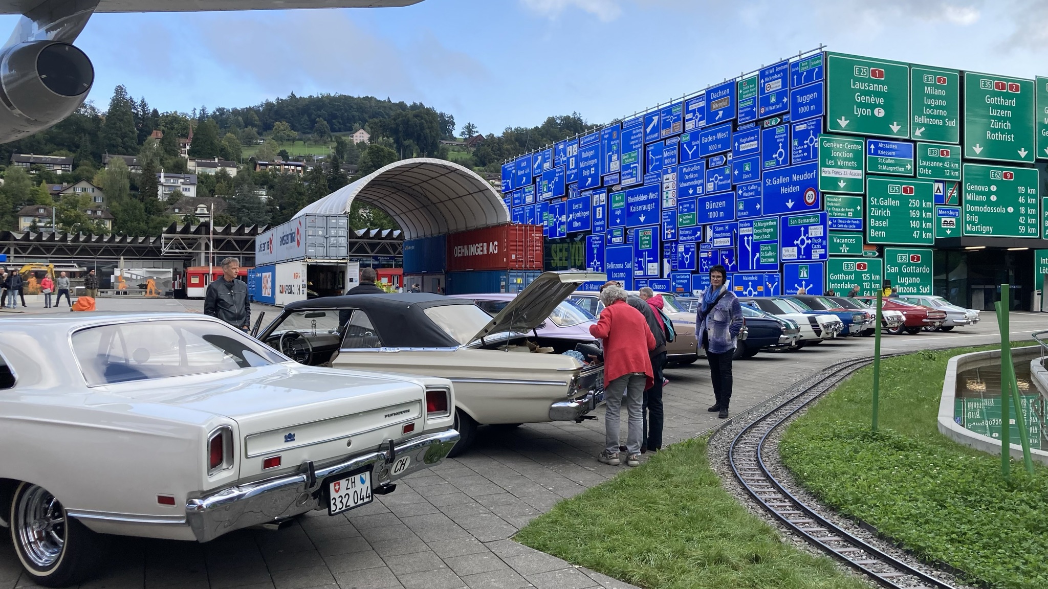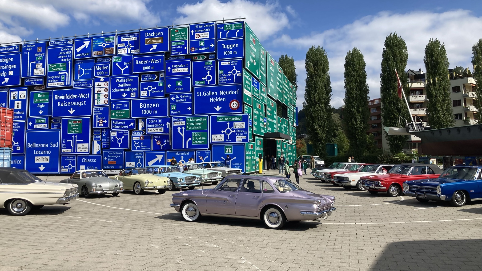Nach und nach „füllte“ sich der Platz und es ergab sich zusammen mit den vielen Strassenschildern und den tollen Exponaten ein super Bild.