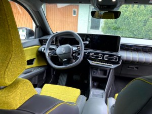 Die Sitze sind manuell verstellbar, genauso wie es sich für einen kleinen Renault gehört und sind deutlich bequemer als damals. Die poppige Innenraumfarbe macht Freude, der optionale Baguettehalter erfreut frankophile Menschen wie mich besonders.
