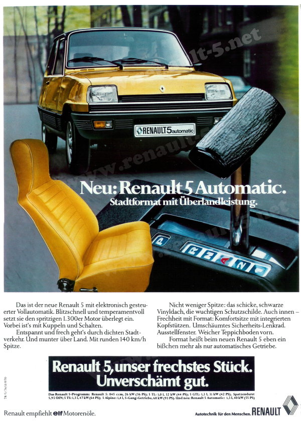 Für mich ist das Heck die schönste Seite des R5, hier erkennt man auch gleich den Vorgänger mit den charakteristischen Heckleuchten. Fairerweise muss gesagt sein, dass der hier gezeigte Ahne ein R5 Turbo 2 ist und nicht das was Claudine 1975 beim Renault-Händler als Stadtauto kaufte.