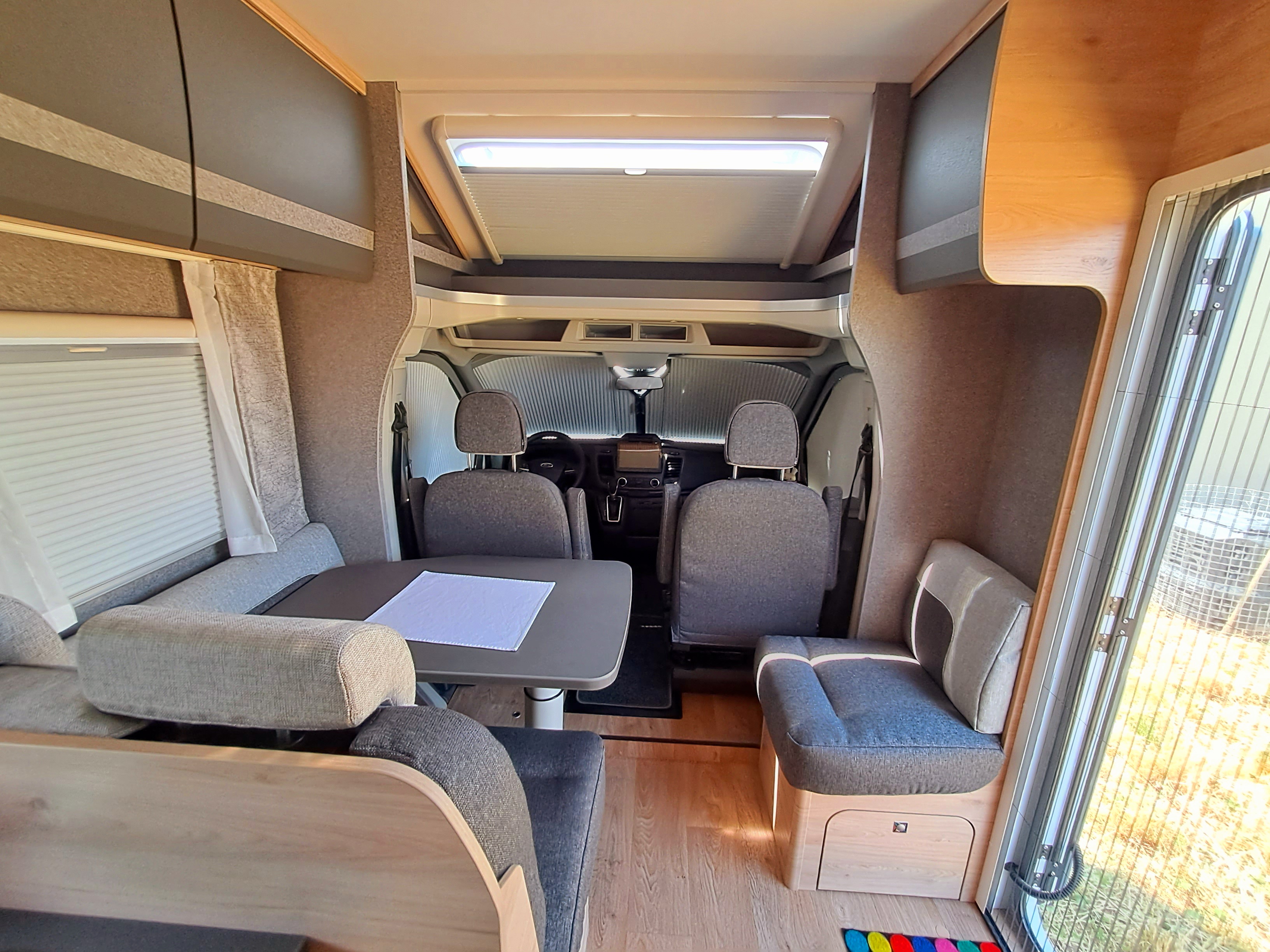 Anfangs hatten wir noch mit einem sogenannten Integrierten geliebäugelt. Das Chassis wird in diesen Fällen ohne Fahrerhaus geliefert, der Karosseriebauer lässt dann ein Fahrzeug aus einem Guss entstehen. Das Raumgefühl im Innern profitiert davon. Kostet und wiegt aber mehr und beispielsweise eine neue Windschutzscheibe zu finden kann, dem Vernehmen nach, nach einigen Jahren schwierig sein. Unser Just Go ist ein Teilintegrierter. Der Wohnaufbau schliesst direkt an die Fahrerkabine (ohne Rückwand) des Fords an. Das bedeutet natürlich, dass dort starke Kräfte wirken. Auch ist die Sache thermisch herausfordernd, da so ein Fahrerhaus geringer isoliert ist als der Wohnaufbau. Neben den genannten Typen gibt es noch die Campervans und Kastenwagen. Beide sind näher an alltagstauglichen Fahrzeugen, würden für unseren Geschmack aber zu viele Abstriche bedeuten.