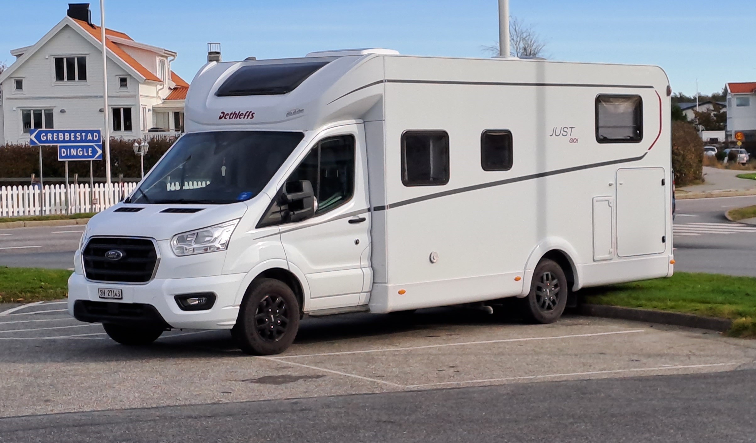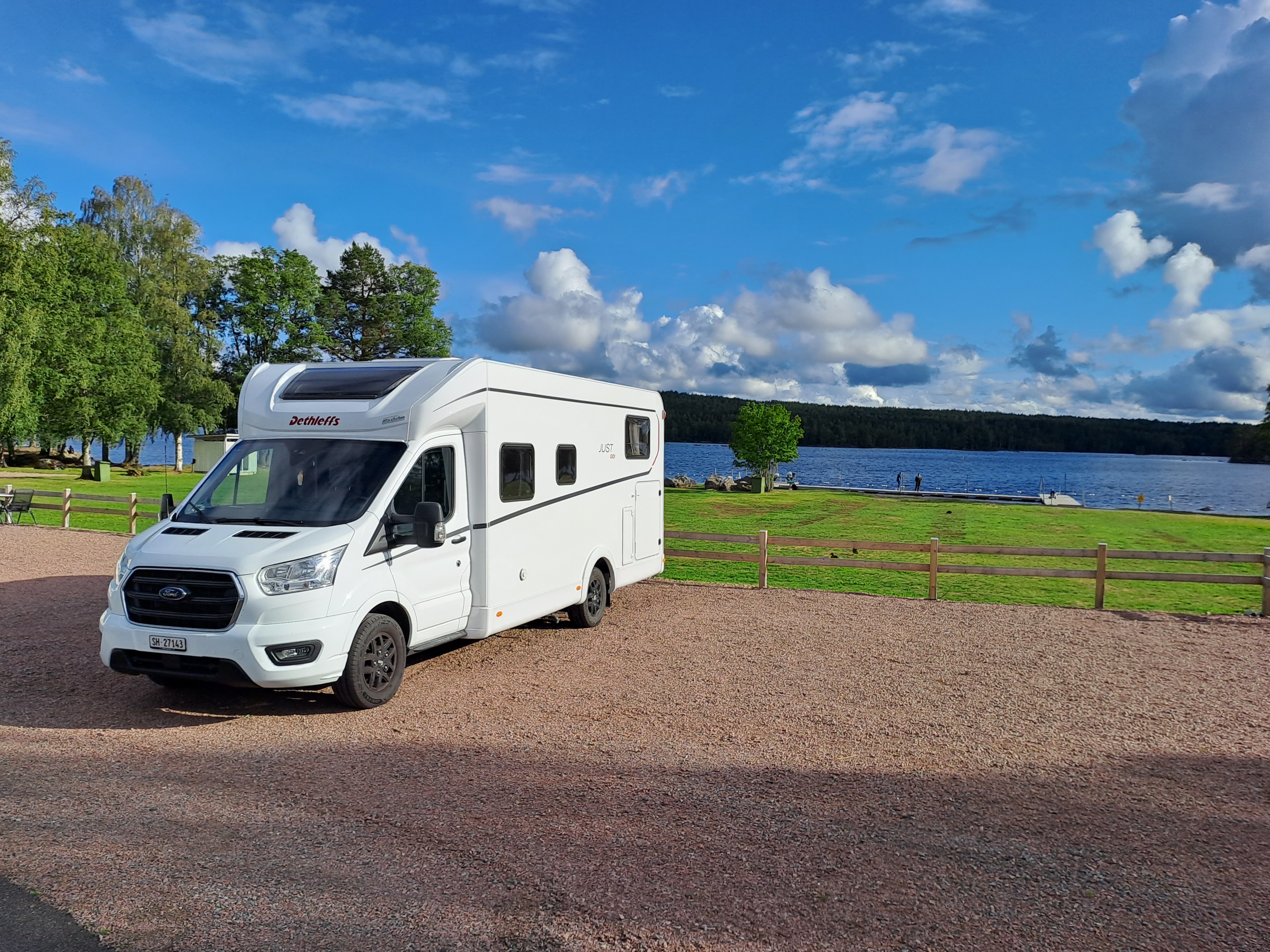 Zum Evaluationszeitpunkt waren wir völlig frei, ob Ford, Fiat oder sonstwas. Automatik war klar, da fielen schon einige weg. Die zwei weiteren Kriterien waren in Stein gemeisselt: Bettlänge deutlich über zwei Meter, dito Stehhöhe. So siebt man gleich gefühlte 90% der Möglichkeiten aus. Letztlich waren es noch drei, vier Marken und Modelle. Überzeugt hat uns schliesslich Dethleffs mit dem «Just Go 7055 EBL», wie WR3 bürgerlich heisst. Sehr modernes und schickes Inneres, schlichtes Äusseres. Zwei lange Betten, luxuriöse Innenhöhe, bequeme Sitze, «Raumbad» (Dusche und Bad/WC getrennt), grosser Kühlschrank. Und viel Stauraum und gleichzeitig Zuladungsmöglichkeit. Hierzulande gibt es (noch) keine 4.25t-Regelung. Da sind es entweder 3.5t oder man macht den LKW-Führerschein (bis 7.5t).